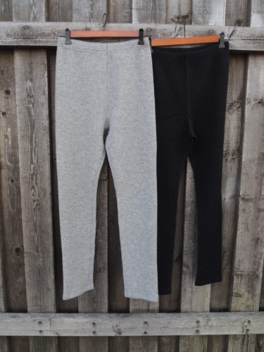 外側がウール混のリブ、中にコットンガーゼ素材のダブルフェイスのレギンスです。