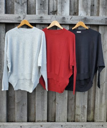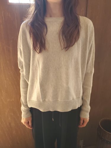 大きく広がらず、くたっとした柔らかさと長めの袖口のリブがすっきり見えるプルオーバー。