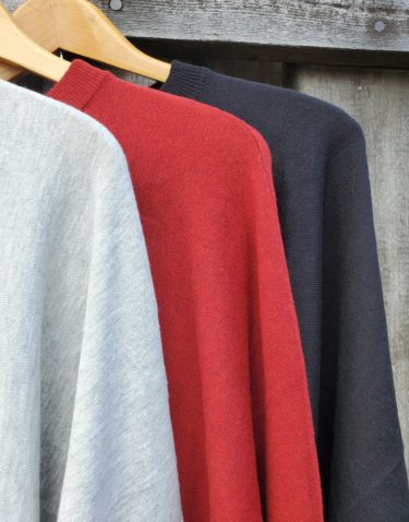 薄手の編地の表面にうっすらとピーチ起毛を施して、あたたかみをプラス。