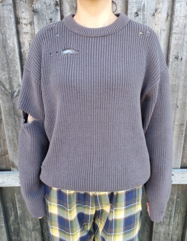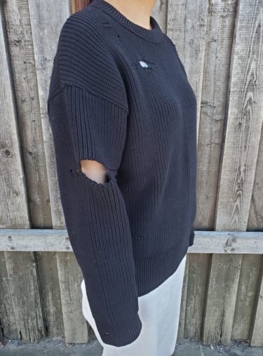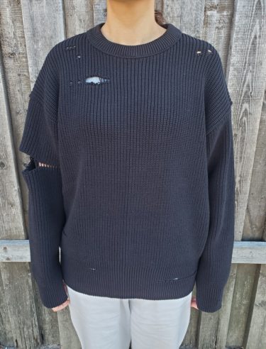 大胆なイメージのダメージデザインを、大人っぽく洗練された雰囲気に落とし込んだ穴あきニットです。