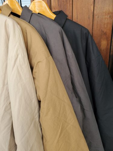 細番手の糸を高密度に織った適度なハリ感がある洗いがかかったダンプ素材を使用し、中綿入りで暖か。