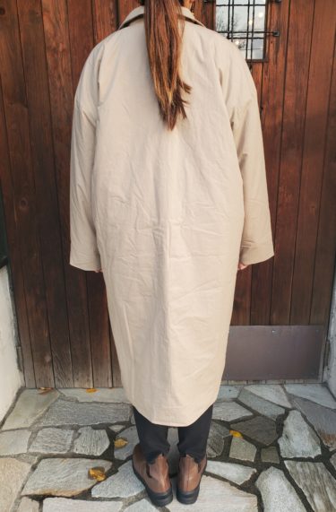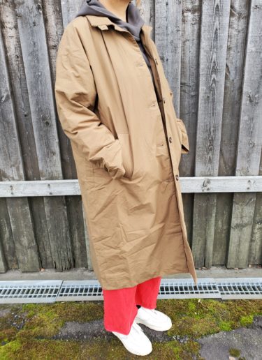 昨年よりも袖丈が長くなって、ボタンの種類は変わったものの基本的な形は変わらず、シンプルなデザインでオーバーサイズ感のあるロング丈。