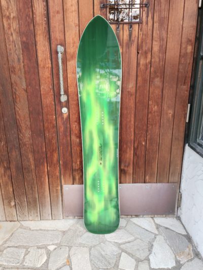 ミスターパイプラインこと、ジェリー・ロペス氏の求める理想的なスノーボードとして生まれたノカオイ。彼が産み出した滑りの境地「どの様な状況でもリラックスして、スムーズなラインを紡いで行くスタイル」その滑りを雪上で具現化するシェイプとなった。パウダーライディングで威力を発揮するポインティーノーズに、テーパーを押さえたワイズを組み合わせ、シャープでありながら取り回しの軽いハイパフォーマンスな、いわゆる「ホットドッギング」なライディングを可能にする仕上がりになっている。均一なコンディションが整う事が少ない、アメリカ北西部の山々でも安定してパフォーマンスを発揮できるよう、キャンバーにはショートキャンバーが採用されている。