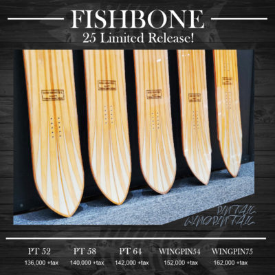 2026.1.24 -[ snow / MOSS SNOW STICK ] MOSSSNOWSTICK FISHBONE PT シリーズ限定販売のご案内です。 23-24シーズンにリリースしてから3年が経過した増産モデルとなります。 限定25本になります。 ■PT52 ■PT58 ■PT64 ■WINGPIN54 ■WINGPIN75 SNOW商品一覧へ 通販・お問い合わせの方は こちらから « SurfID 入荷予定 »