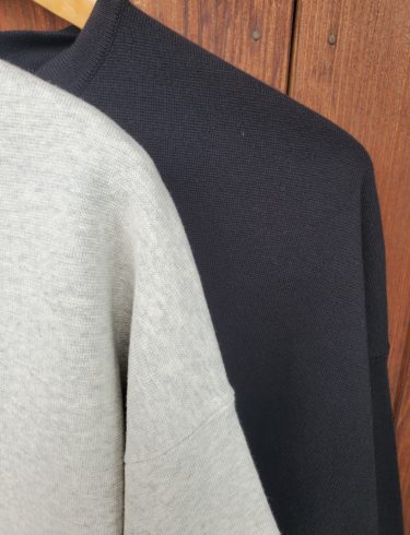 コットンならではのやわらかさと適度なハリを兼ね備えた糸を使用し、程よい厚みとハリ感のある目の詰まったミラノリブの編み立てが上品な印象に。