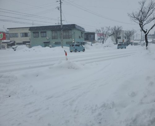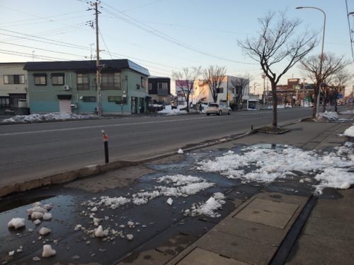 排雪されて、道路脇の雪の山が無くなっても真っ白だった2月中旬。