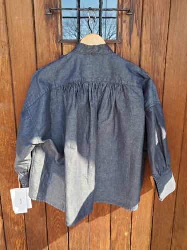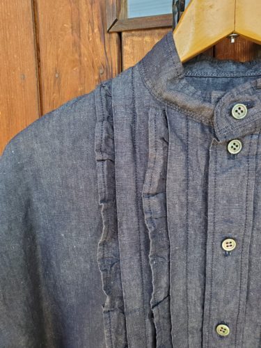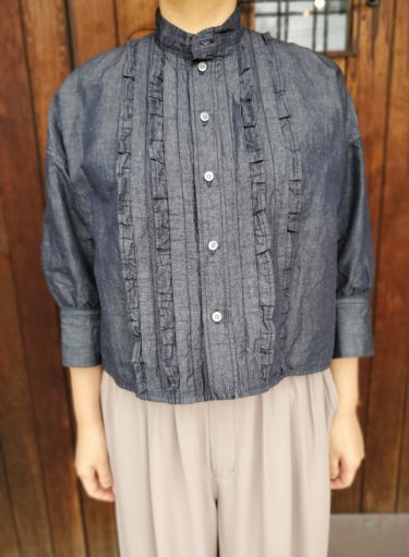 KCY ダンガリースタンドカラーギャザーフリルブラウス